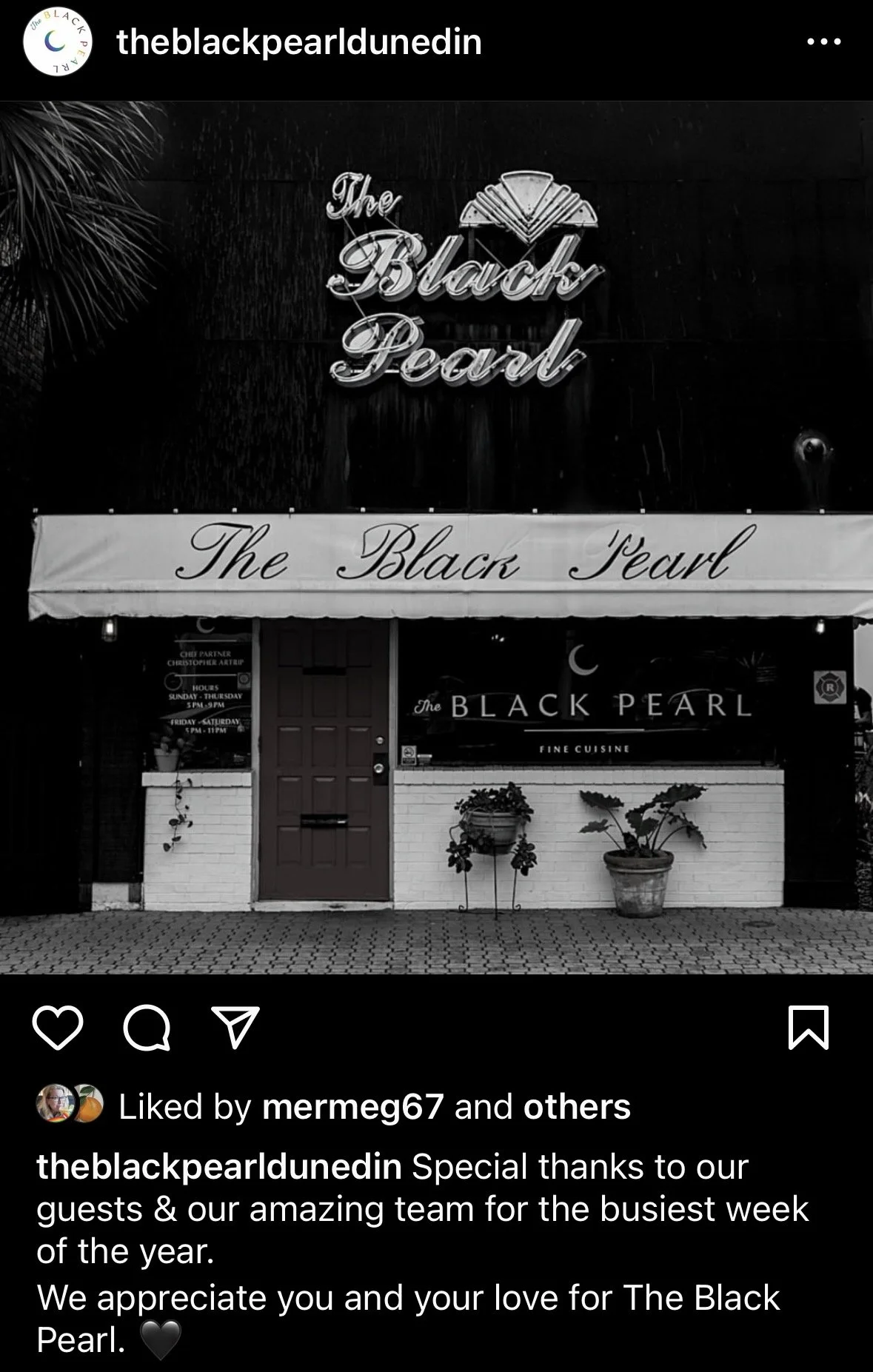 I ventured out to The Black Pearl during its most ambiance-like time to capture itβs nighttime beauty to share with our guests. These images allow us to showcase the restaurant's unique charm after sunset, inviting guests to experience itβs magic in a darker setting.